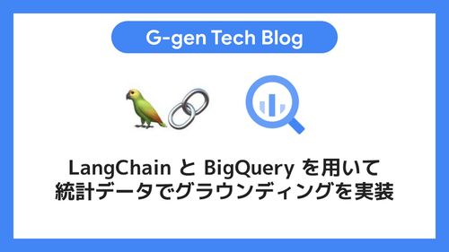 G-gen 又吉です。当記事では、Google Cloud の LLM (Vertex AI PaLM API) と LangChain を組み合わせて、自然言語から BigQuery 上の統計データを取得する方法を紹介します。 はじめに 準備 実行環境 使用するデータ 実装 ライブラリのインストール 関数の定…