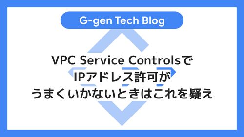 G-gen の堂原です。本記事では Google Cloud (旧称 GCP) のセキュリティサービスである VPC Service Controls において、IP アドレスを許可したにも関わらずアクセスが弾かれるケースにおける見落としがちな原因について紹介します。 はじめに 事象 : IP ア…