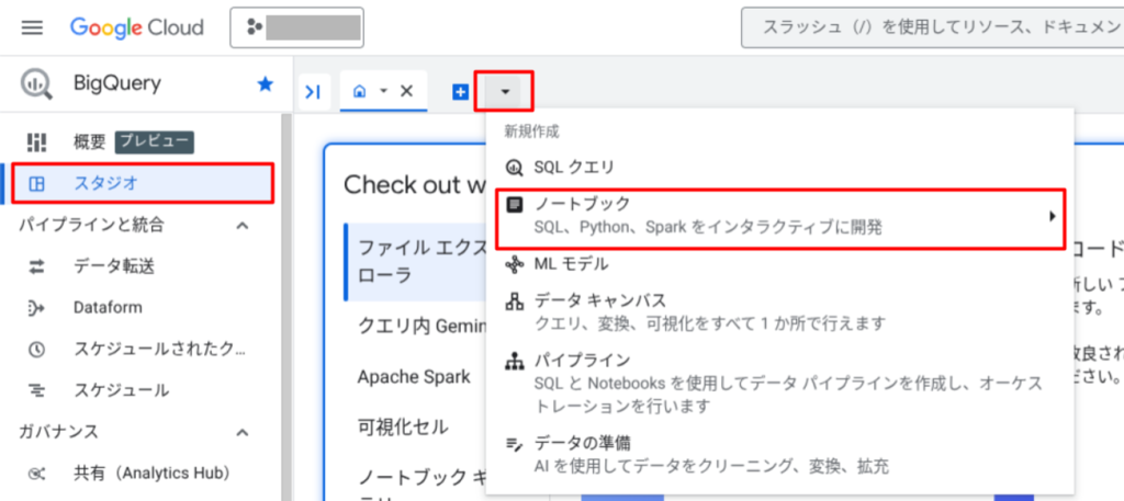 まず、BigQuery Studio で新しいノートブックを開きます。