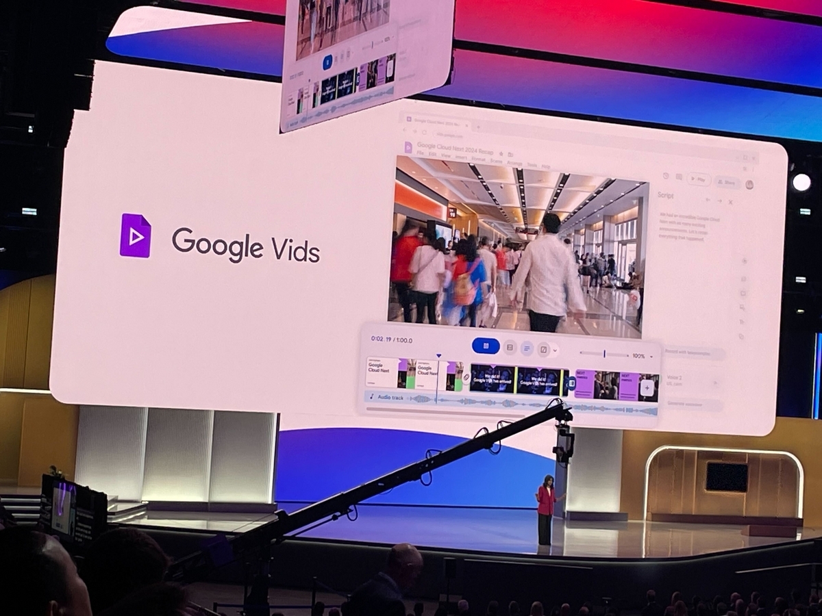 特に強調されたのは Google Workspace の新サービスである Google Vids の発表です。Google Vids は生成 AI を使った動画編集や生成のサービスです。テーマに沿ったストーリーボードを自動生成し、ユーザーが保有する動画、画像、音声などをもとに容易な動画編集を可能にします。他の Google Workspace サービスと一貫した操作性で、ブラウザ上で完結する動画編集サービスです。2024年6月に、Workspace Labs(実験的機能のプレビューができる招待制のプログラム)で公開予定です。