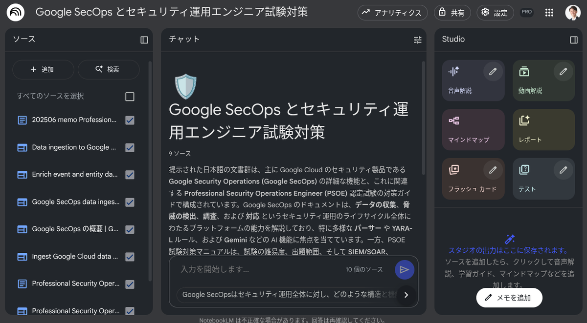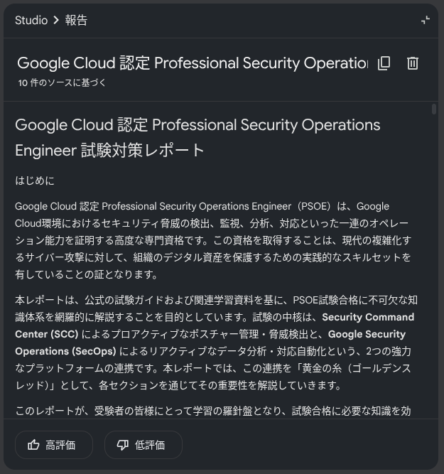 当記事では、これらの機能を使い、Google Cloud 認定資格「Professional Security Operations Engineer」の勉強をした事例を紹介します。