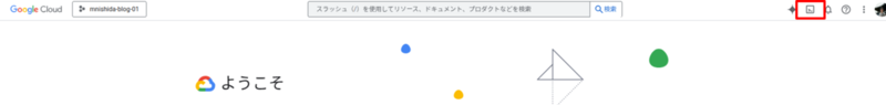 Google Cloud コンソールにアクセスし、アプリケーションを開発するプロジェクトを選択したら、画面右上の [Cloud Shell をアクティブにする] アイコンをクリックします。