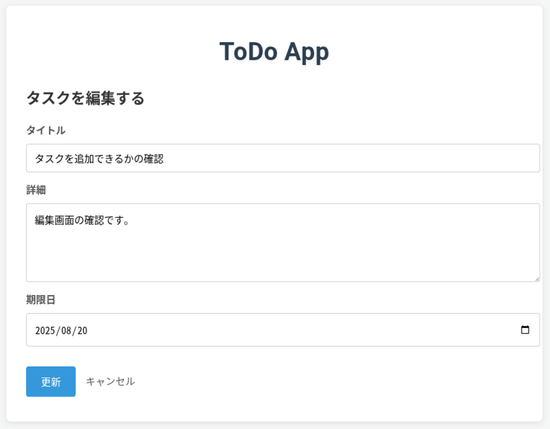 * タスクのタイトルや詳細、期限を編集できる。