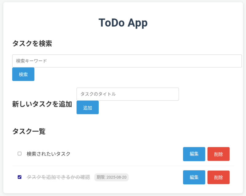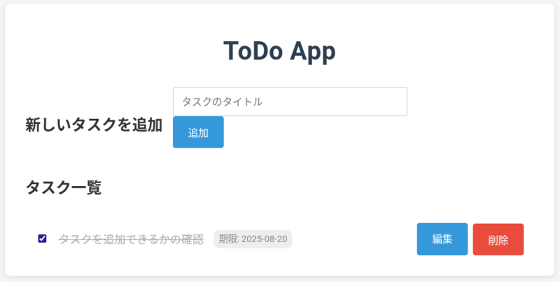 To Do 管理のアプリケーションとしては、まだまだ機能追加が必要ですが、要件として定義していた最低限の機能は想定通りに動作することが確認できました。