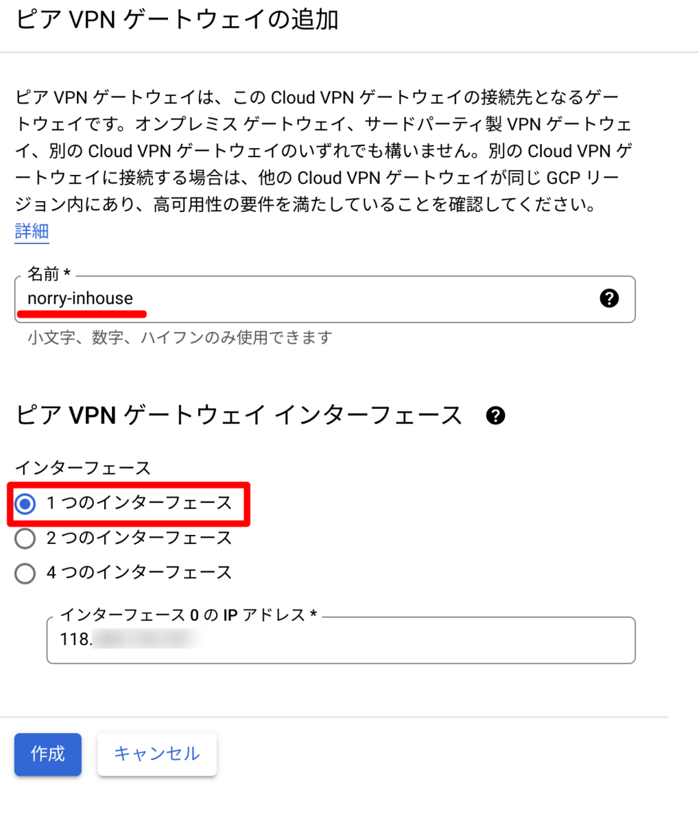 ピア VPN ゲートウェイ(IP) | 118.xxx.xxx.xxx |